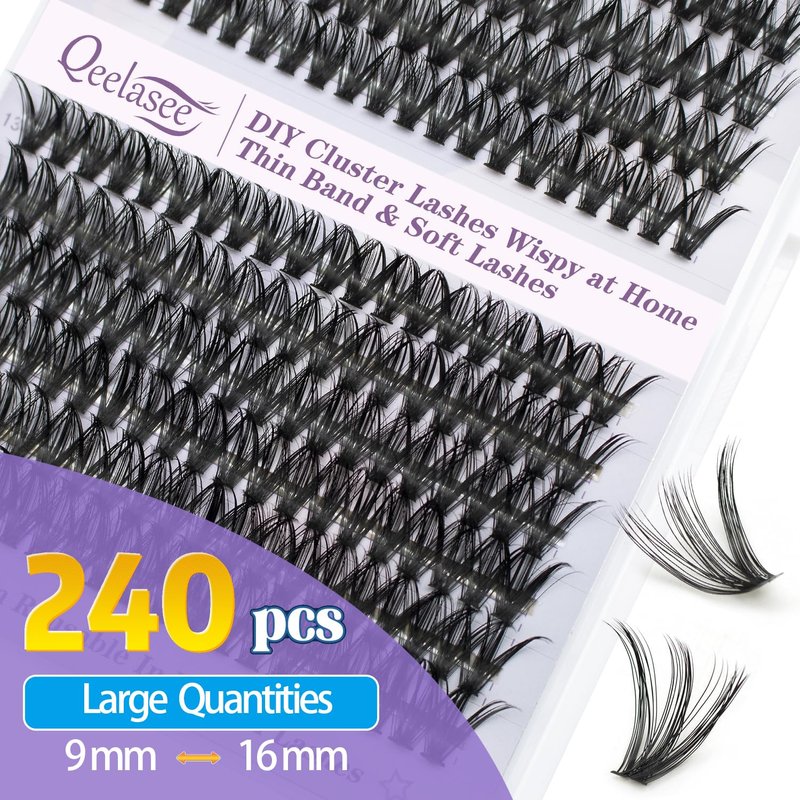 Qeelasee Lash Clusters Wispy 40D DIY Eyelash Extensions D Curl Individual Eye Lashes Natural Effect Volume 240pcs Mix9-16mm Easy For Beginner At Home