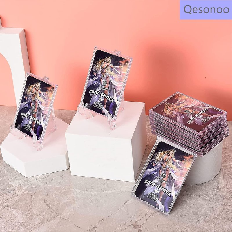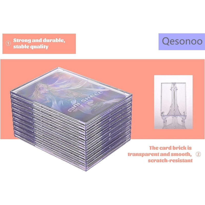 Qesonoo Cards Sleeves Top Loaders 10 Hard Acrylic Card Protector Clear Card Brick + 1 Display Stand Fit for Trading Cards,Standard Sports Cards,Baseball Card Holder Cases Collectibles White