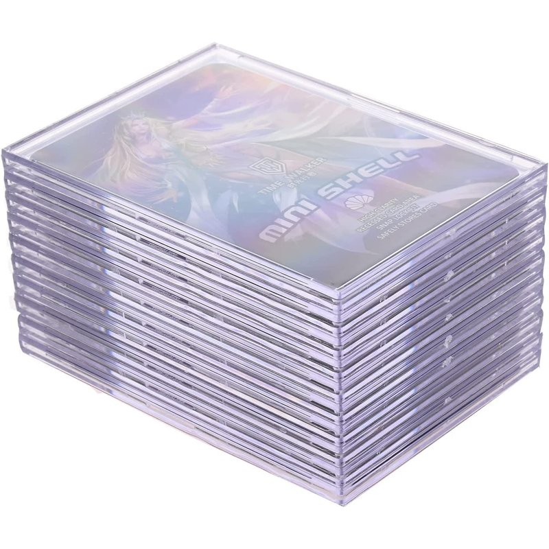 PRODUCT SIZE: The external size of the card brick is 3.7x2.6x0.19 inches, and the internal size is 3.5x2.5x0.06 inches. PACKAGE INCLUDES: You will get 10 hard card holders and 1 display stand; the hard plastic card holders can accommodate standard size transaction cards, and the number is enough to meet your different transaction card protection needs. COLLECTION AND PROTECTION: The transparent protective cover holder can well collect and protect your cards from dust, scratches, grease, dirt and liquids, and can be easily stored in various types of trading cards and can be used for a long time. PORTABLE AND COMPACT: The transaction card holder is light in weight, suitable in size, convenient to carry and store, and can be placed in a pocket, handbag, or briefcase. It will not bend the card or bring any burden to you, but keep the card tidy and clean.