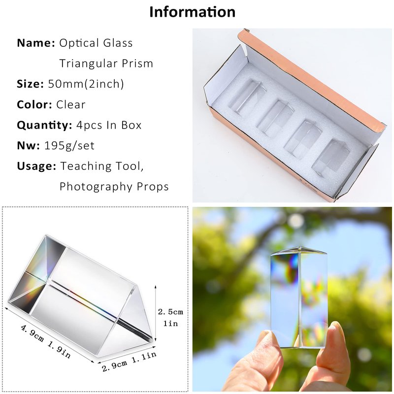 - Lightweight and Portable - Our prisms (4pcs 50mm/2inch) come with a gift box for safe and easy transport, making it the perfect gift for family and friends.