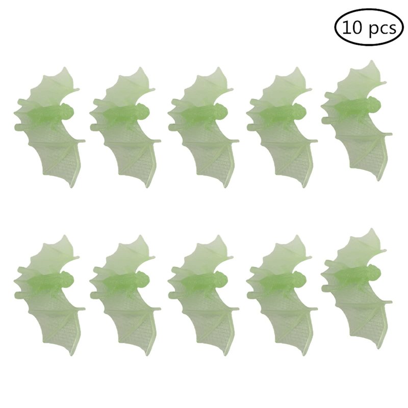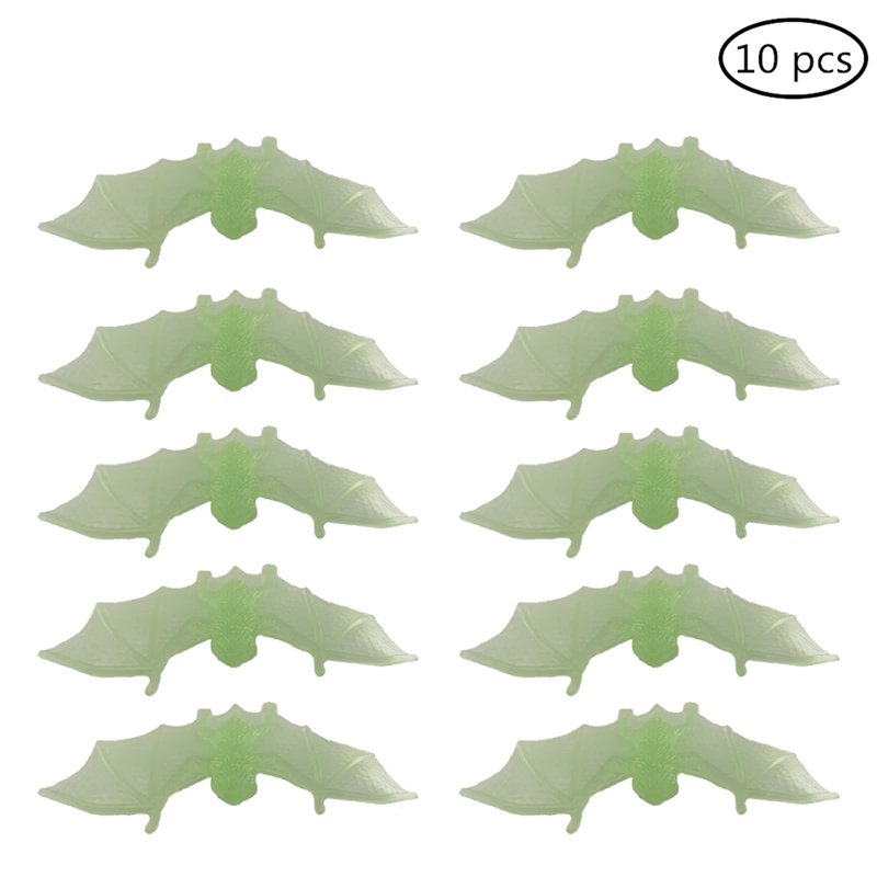 - ★【10 PCS GLOW IN THE DARK FAKE BATS】: Glow in the dark night light illusion luminous realistic plastic fake bats spooky bats for Halloween trick decoration event supplies.