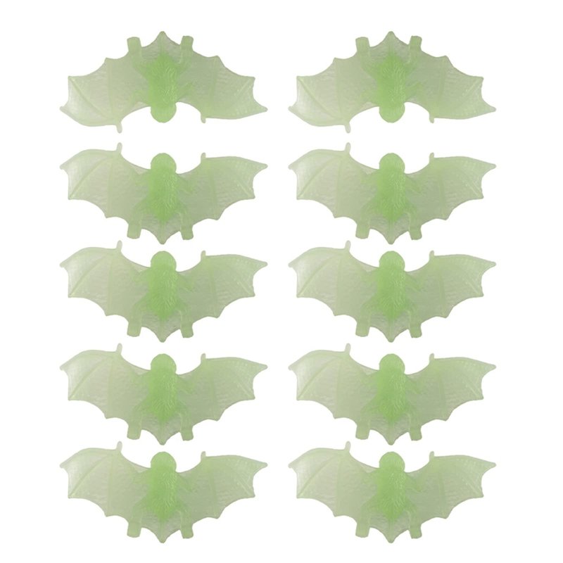 - ★【SIZE】:Bat Body size: 10*4 cm (3.9*1.6 in).This set small fake bats include 10 pcs green glow in the dark fake bats.