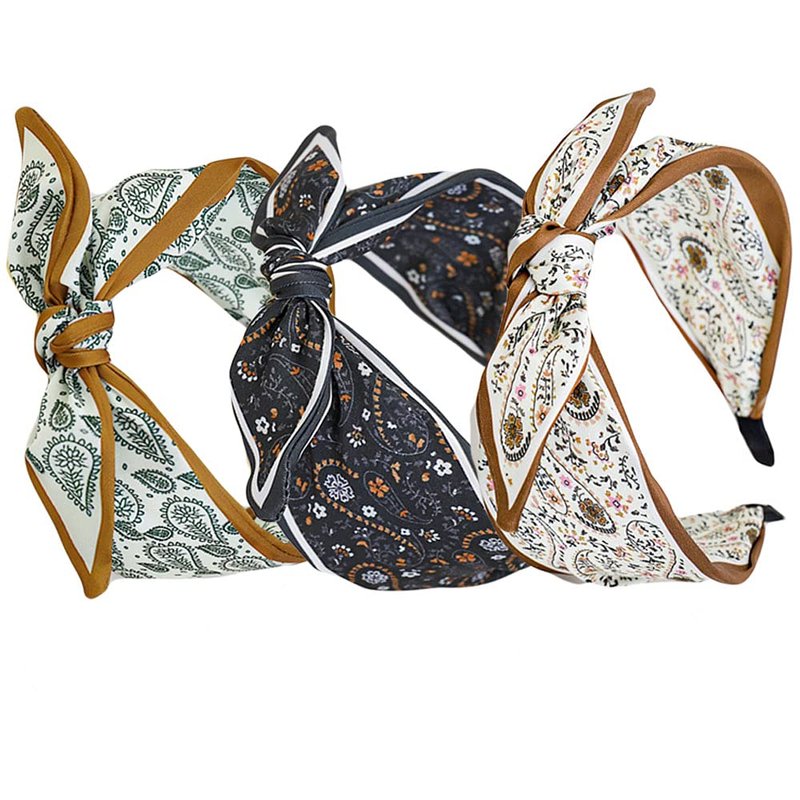 Qiabao Womens Vintage Patterned Bunny Ears Headbands Headwraps Hair Band (H)