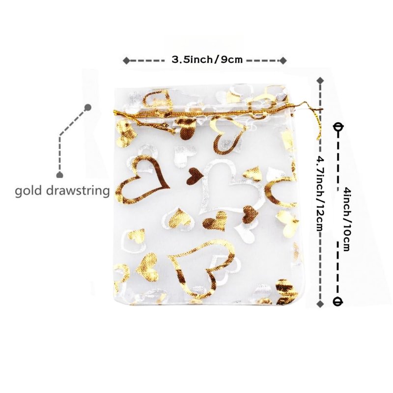 QIANHAILIZZ 100 pcs 3.5 x 4.7 Inch Flower Heart Organza Jewelry Gift Pouch Candy Pouch Drawstring Wedding Favor Bags X92 (A white with gold heart)