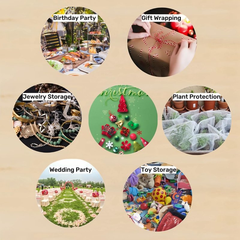 • WIDE APPLICATIONS: These organza bags can be used for storing food, packing gift, travel storage, and keeping some items such as snacks, cream jars, jewelry, coins, candy at parties, shipping hardware or other small metal parts. You can store daily essential.