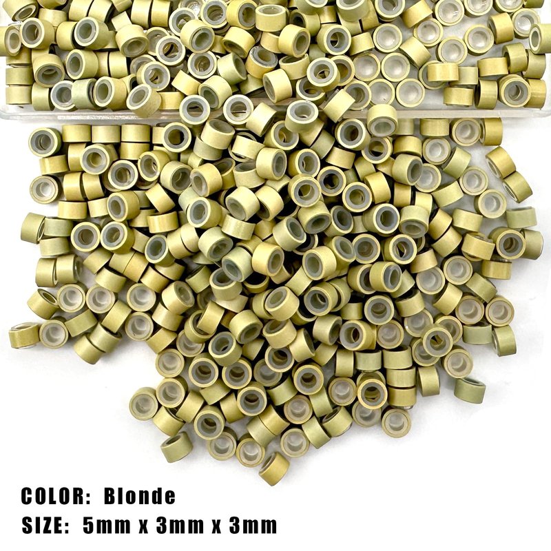 QIANSEE 500Pcs 5mm Blonde Silicone Hair Tinsel Beads and Micro Rings for Hair Extensions, Feather Hair Extensions Tools
