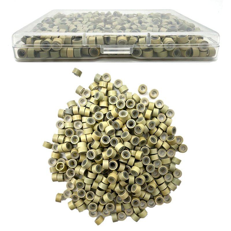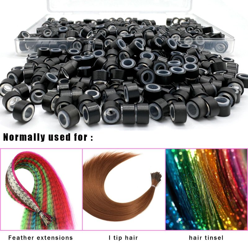 This silicone hair beads is used for human hair extensions, synthetic hair extensions, hair tinsel extensions. Two-layer design. The outer layer is made of aluminum, the inner layer is made of soft silicone material.