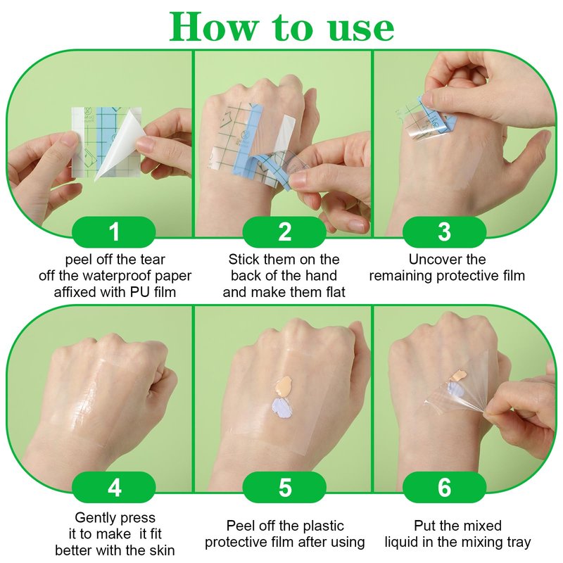 - 【Easy to Use】First tear off the waterproof paper with PU film, stick professional makeup artist supplies stickers on the back of your hand and press flat. When using, just tear off the plastic protective film. The operation is simple and convenient, no need to wash your hands saving you more time and energy.