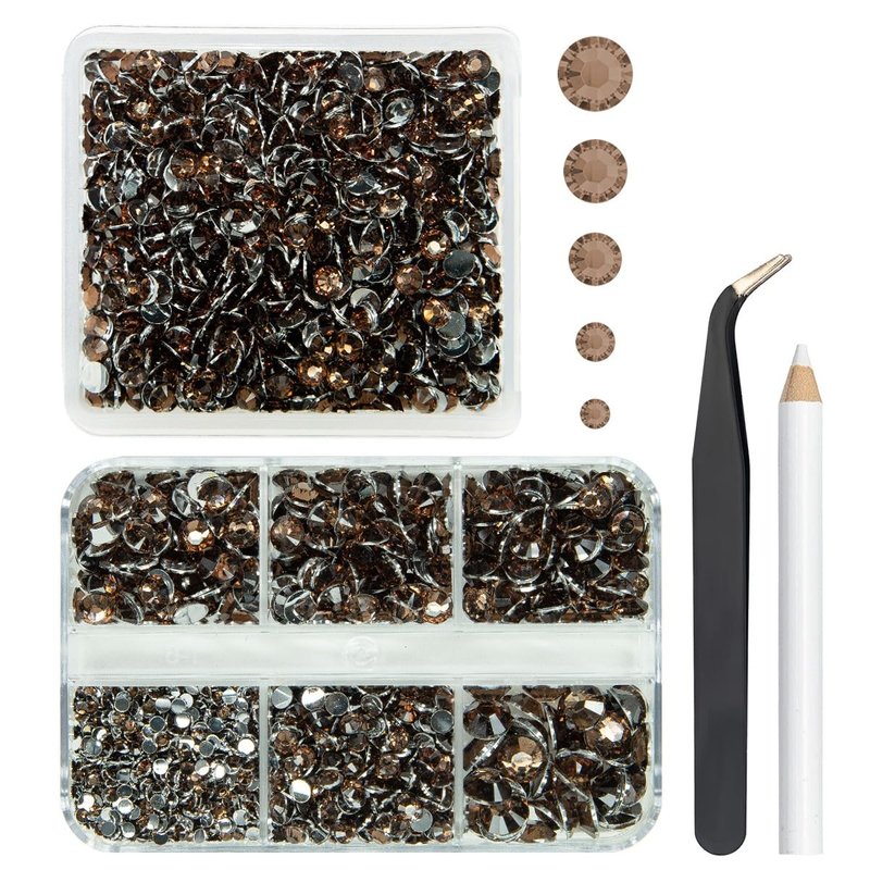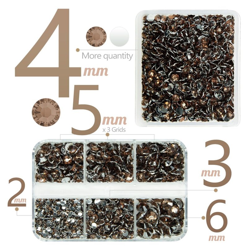 - ❤【2 Boxes Brown Resin Crystal Rhinestones + Stainless Steel Tweezer + Pickup Pen】3060PCS Brown Coffee flatback resin rhinestones are assorted in 5 sizes: 2mm 1300PCS / 3mm 450PCS / 4mm 920PCS / 5mm 350PCS / 6mm 40PCS. Brown Coffee flatback Resin rhinestones are very light and easy to carry, all gems are packed in each grid boxes according to different sizes, convenient to oragnize, no worry about rhinestones mixed together. Comes with 1 Tweezer and Pickup Pen for DIY Crafts.