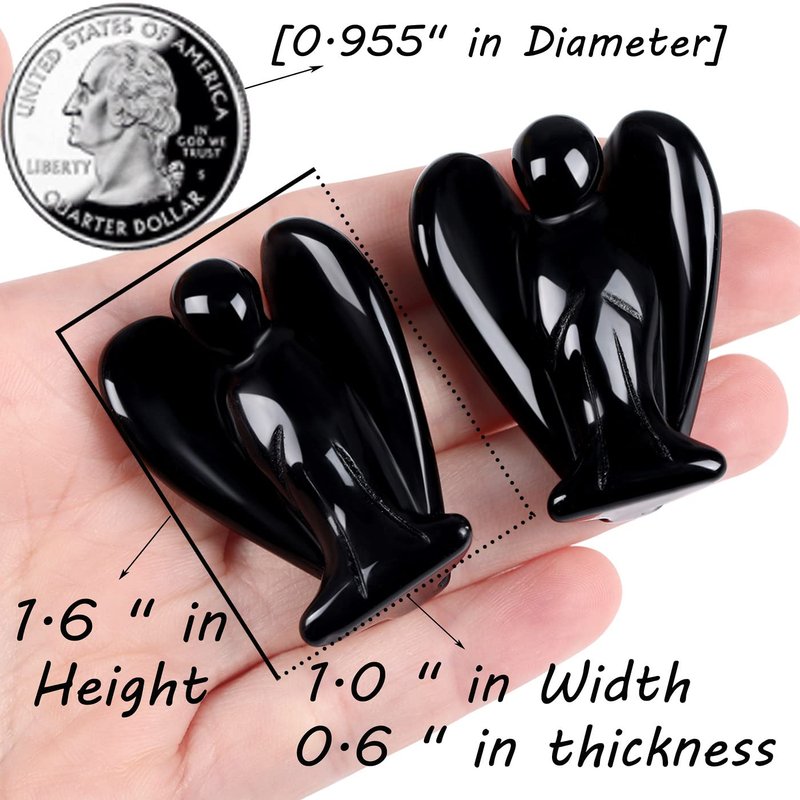 - [ Basic Information ] Specification attributes : 1 Piece Carved Black Obsidian Angel Crystals Pocket Guardian. Size (approximately) : 1.57*0.98*0.6". Weight : 10 g/set. Crystal Angel Guardian Statues can bring comfort and strength. And These look amazing in our meditation space. This product was a gift for someone who was feeling down and sad.