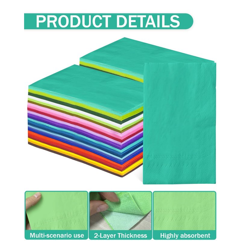 - Size: 120 sheets, 2-ply, foldable to 4.33*8 inches, unfolds to 13*16 inches, 24 colors Dinner Napkins.