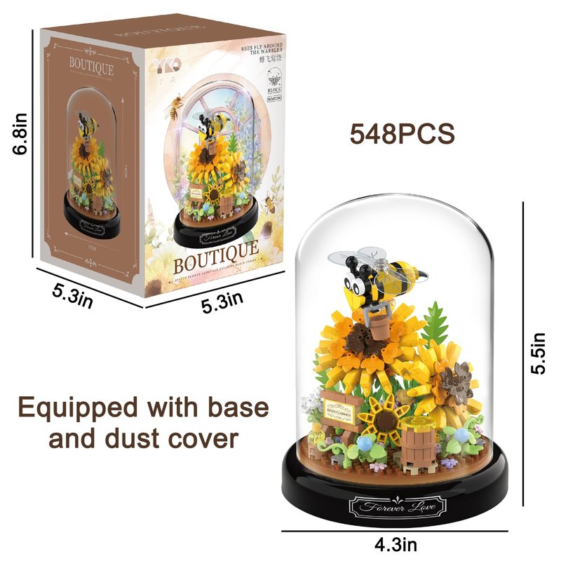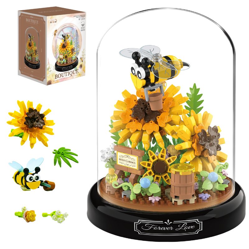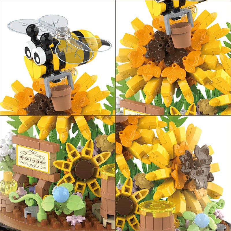 - Bee Bouquet Building Block Set--This is a small garden made of 548 mini bricks with honey bees and sunflowers in bright colors, it is a creative gift for your family or friends.It's a great display on your office or home decor