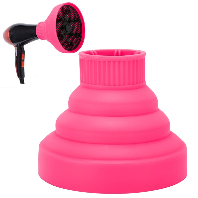 QIRG Hair Dryer Diffuser Attachment, Professional Collapsible Silicone Expand Universal Hair Diffuser Lightweight Foldable Portable Travel Long Lasting Blow Dryer Nozzle for Natural Curly Hair(Pink)