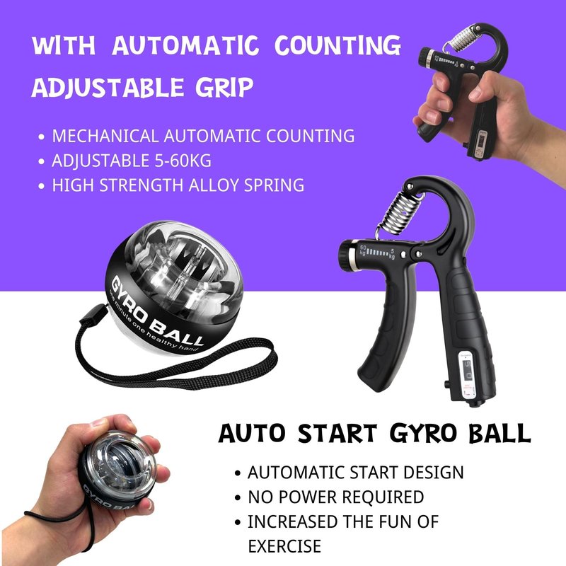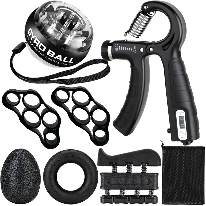 - ✔[Hand Grip Strengthener Workout Kit (8 Pack)]: Forearm Grip Adjustable Resistance Hand Gripper, Finger Exerciser, Finger Stretcher, Gyro Ball,Grip Ring & Stress Relief Grip Ball for Athletes.
