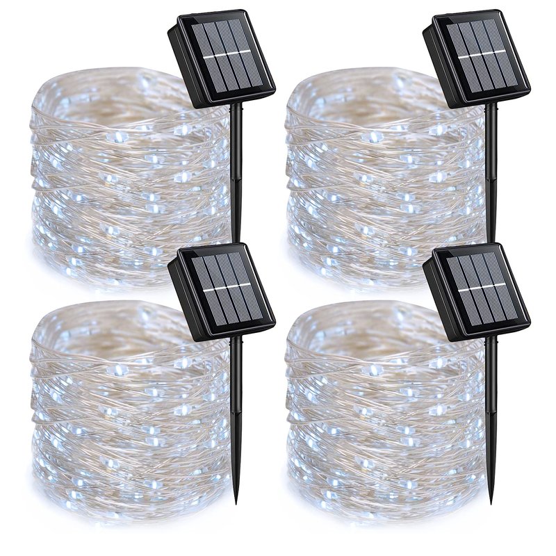 - What You Get: 4*100 LED white solar fairy lights, 4*stake, 4*stand, quick and friendly customer service.