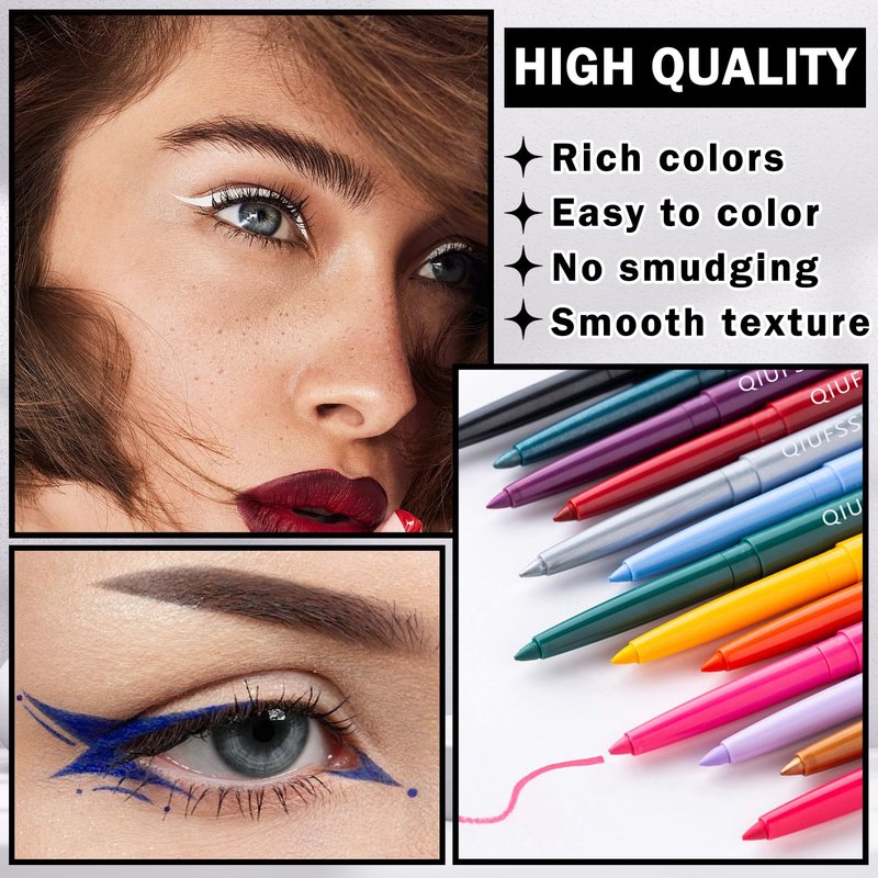 - 【Retractable Eyeliner】Eyeliner pencil is used to shape the eye contour and highlight the eye color.It can clearly outline your eye lines and enhance the makeup style.Exquisite eyeliner can enhance your personal appearance and make you full of confidence.