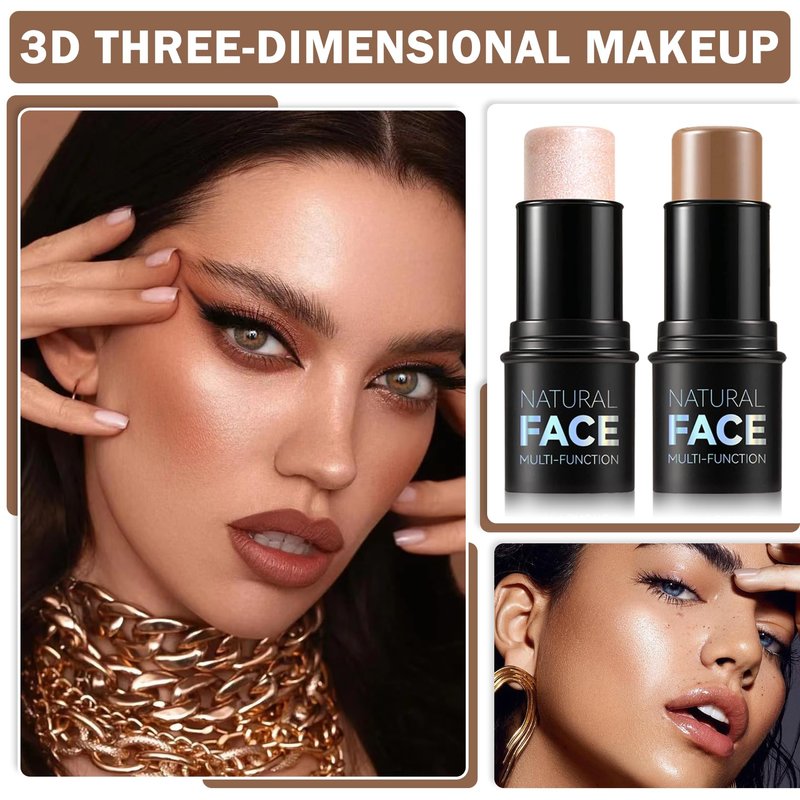 - 【Cream Contour Stick Kit】Contour kit includes a cream bronzer stick,a highlighter stick and a soft contour brush for blending.It is super easy to blend and layer,easily contouring your face,making your face more three-dimensional and beautiful.