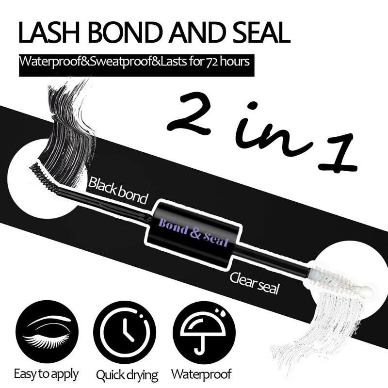 - 2 in 1 waterproof lash bond and seal:Glue and sealed double tube design, the brush head uses 360 ° spiral mini eye black brush head to help more easily apply glue. The glue is black, the sealing liquid is transparent, and when paired with fake eyelashes, it looks more natural.