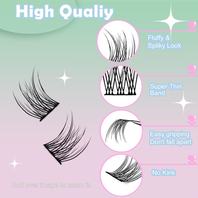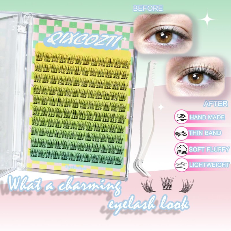 【Lash Extension Cluster】We're so excited to send you our meticulously crafted DIY cluster lash! We designed it to bring you the perfect lash experience, right in the comfort of your home or on your travels. And you can even customise your lashes to your liking! And the best part is that you don't need to worry about excessive storage space or salon appointments! You can achieve stunning lashes in the comfort of your own home, saving you time and money.【Lash Extension Cluster】We're so excited to send you our meticulously crafted DIY cluster lash! We designed it to bring you the perfect lash experience, right in the comfort of your home or on your travels. And you can even customise your lashes to your liking! And the best part is that you don't need to worry about excessive storage space or salon appointments! You can achieve stunning lashes in the comfort of your own home, saving you time and money.【pestañas postizas naturales】These lovely false eyelashes use a thin band to make them flatter and more natural, so they blend more fully with your own lashes. Unlike the previous strip false eyelashes, single false eyelashes may be more suitable for your own situation. That's because everyone's eye contour is slightly different, and you can use different lengths of lashes to create more style possibilities – cat eye, fan eye, doll eye, dramatic eye, natural, fluffy and more.【Individual Lash Extension】Our Soft & Thin Lash Band is a wonderful DIY eyelash extension that has an ultra-thin band, which ensures a gorgeous wispy effect, a soft and comfortable experience, and a seamless blend with your own eyelashes.【Cluster Extensions】Cluster lashes are so versatile and can be worn on any occasion! Whether you're going to work, a wedding, a holiday, or a night out, you can choose a wispy or fluffy lash cluster combination to match. They're perfect for a night out with friends, a special event, or even just for work! You'll be able to create all these looks in no time!