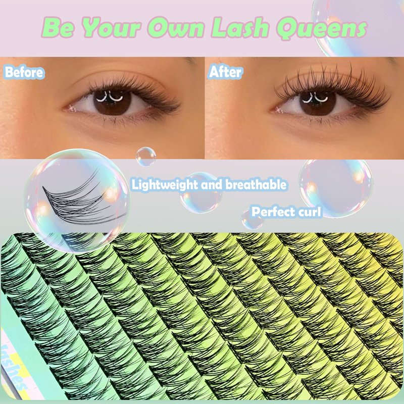 - 【DIY Lash Extension】: Cluster eyelash extensions are so fluffy and natural-looking! The best part is that high-quality lash clusters look just like your natural lashes with a salon lash extension. If you love natural eye makeup, this could be the perfect choice for you! Eyelash clusters are soft and lightweight, and the ultra-thin band makes individual lashes super easy to apply. You'll barely even notice you're wearing them all day!