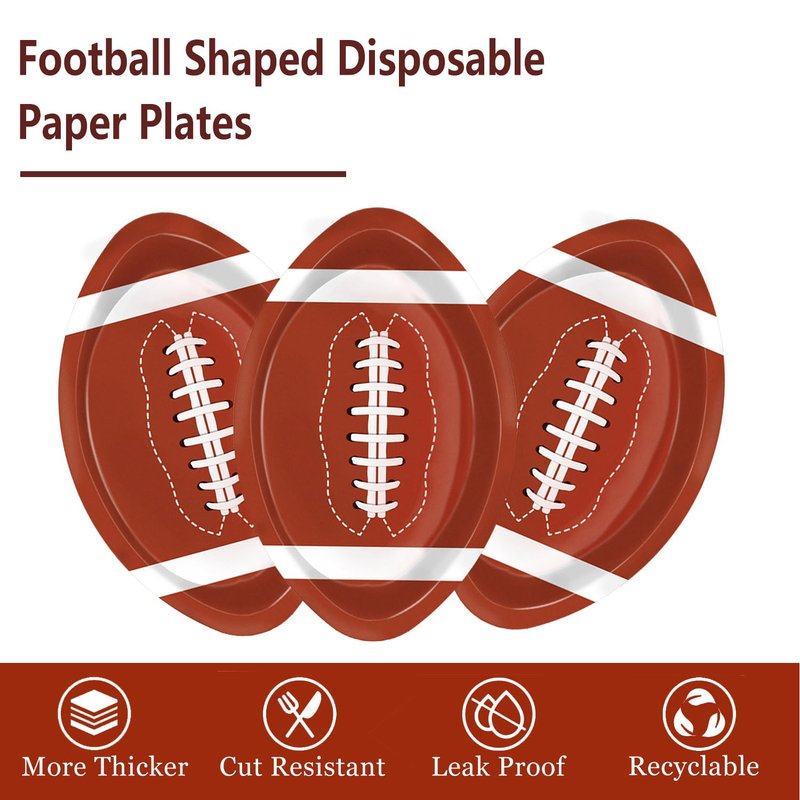 - FOOTBALL THEME DESIGN: Our disposable paper plates are shaped like footballs, creating a perfect gaming atmosphere for your football party. With their novel and attractive shapes, these plates are sure to impress your guests.