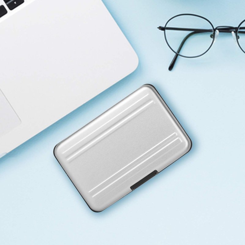 Qkenvo Aluminum Shock Resistant Carrying Box Memory Card Storage Case Holder 8 Slots for SD SDHC MMC Micro SD TF Cards Silver