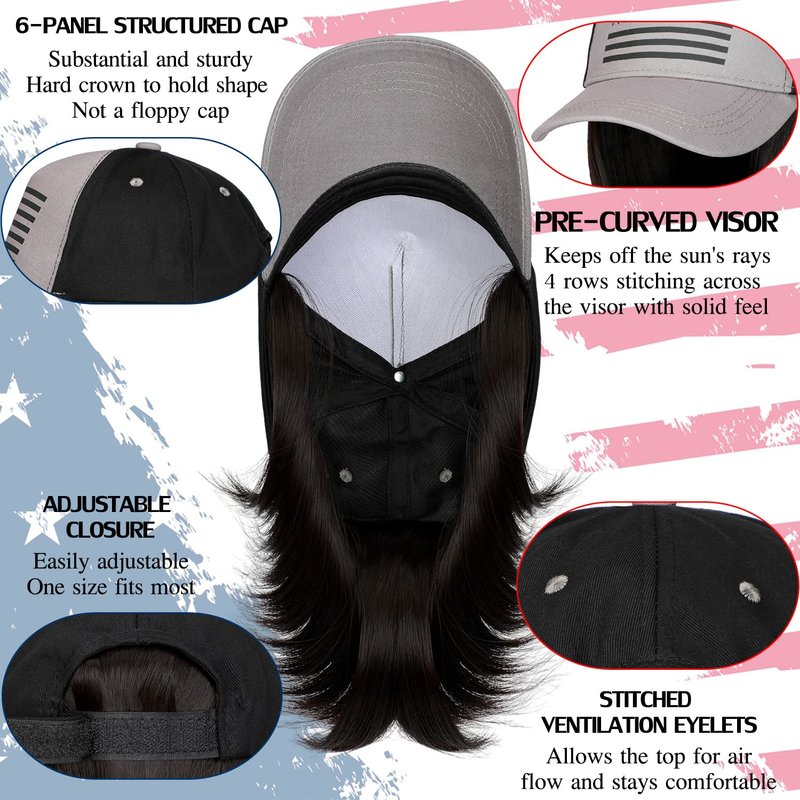 - Occasions~ Perfect ball hat with hair for any occasion. The black and gray look great with the American flag symbol. Cool, and not too bright. So you can use it as a daily hairstyle. Hang out, run in a hurry, go to a bar... Plus, this is a simple design yet elegant wig hat. It is perfect for Memorial Day, Flag Day and Independence Day, etc.