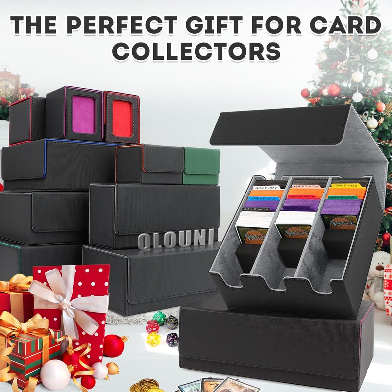 QLOUNI Card Storage Box for Trading Cards, 2100+ Card Deck Case with PU Leather and Magnetic Closure, TCG Storage Box, Suitable for MTG, YuGiOh, and Sports Cards, Includes 8 Card Dividers