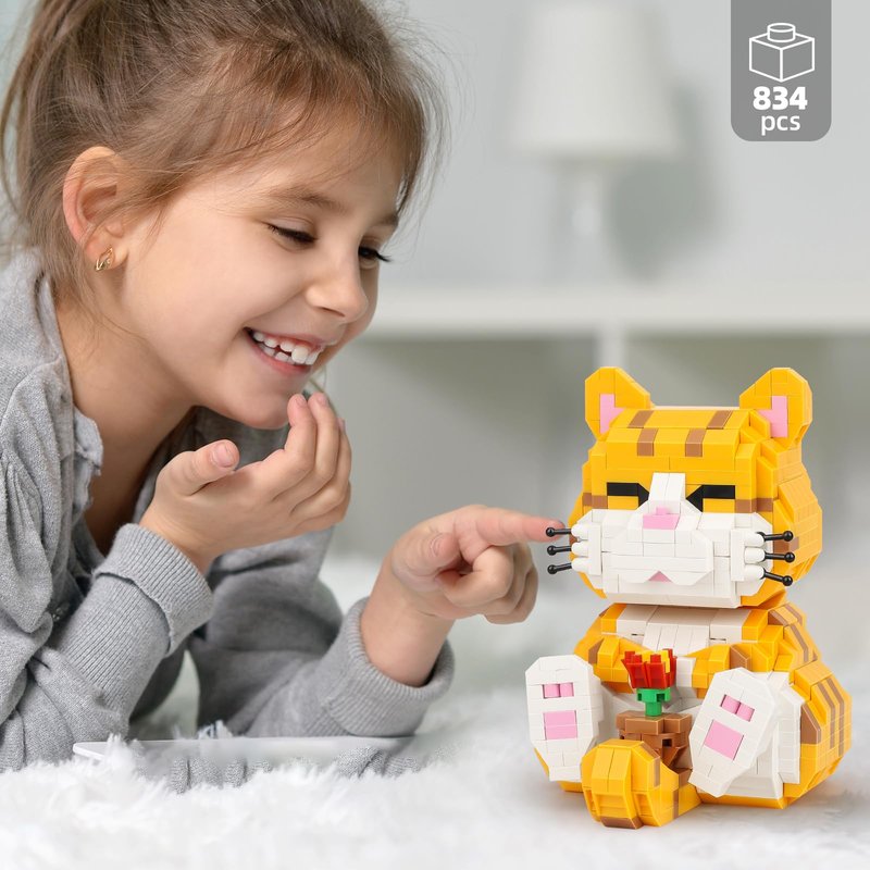 QLT QIAOLETONG Cute Animal Micro Mini Building Blocks Kit, Orange Cat Micro Bricks Building Toys for Adults, Party Favors for Kids 8-12+, Birthday Gift, Carnival Prizes (834 PCS)