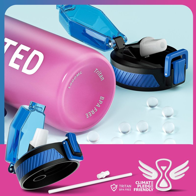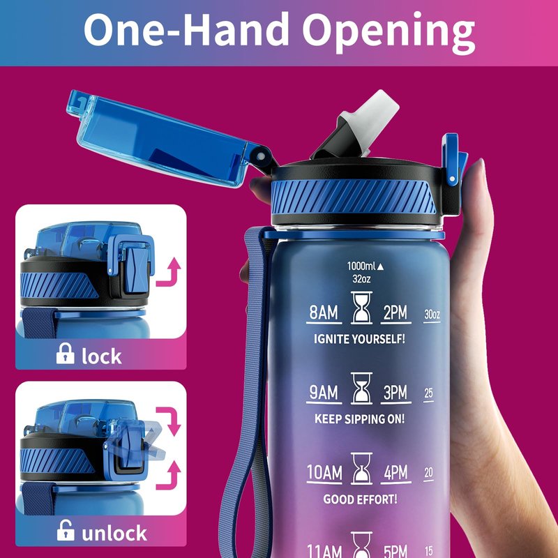 - Easily Open & Leakproof: Our motivational water bottles flip-top lid is designed with a secure lock, which effectively preventing dust and leak-proof. It can be easily opened with one hand. Our sports water bottles for school has a silicone nozzle with a straw inside to prevent turbulent water flow