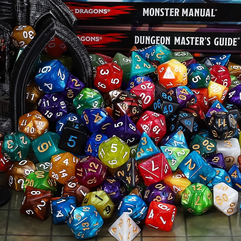 - Super DND dice set : 25 sets of 7dice ( 175pcs in Total ), Including 5 sets of double-color polyhedral dice that have a slight pearled sheen. Comes with a black Drawstring bag, convenient to store and carry.