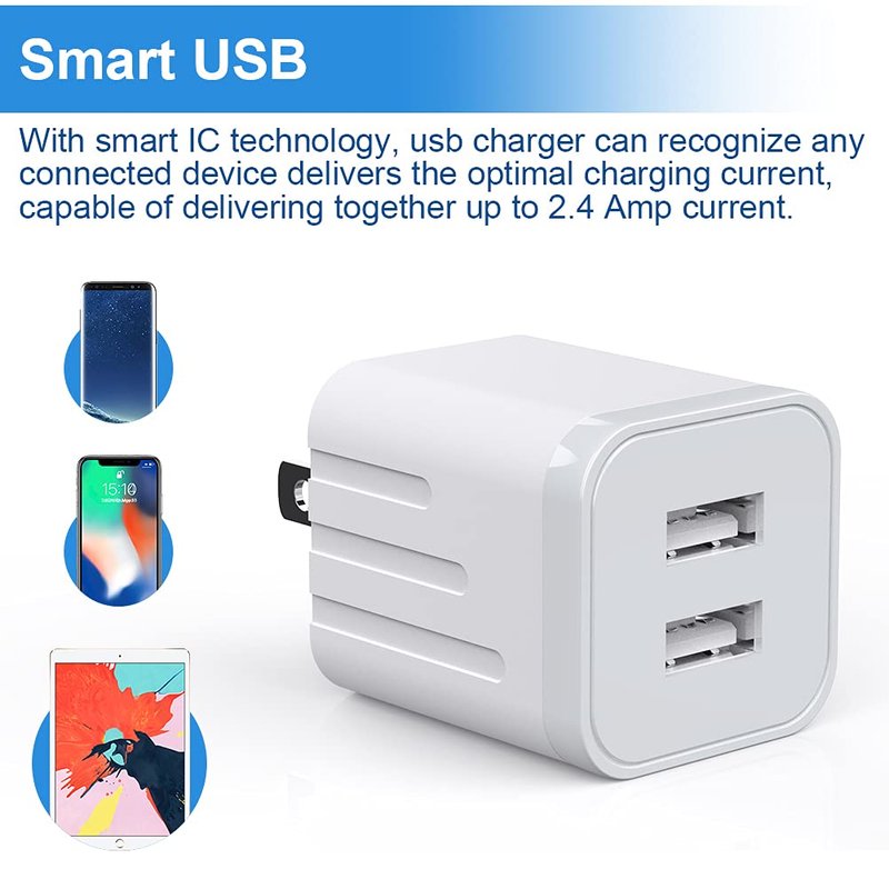 Color: White Quality Assurance -All Products has been 100% tested ensure it works -Power Supply is easy to fit and remove -It is made from tinned copper and has high charging speed. -UL certified for safety, manufactured with the highest quality materials,Provides overcharge Protection System/Short circuit/Overload protection/Over-heat protection Broad Compatibility: Compatible with all 8-Pin Lightning Devices. - iPad 4/Mini/Mini2/Mini3/Mini4/Air/Air2/Pro - iPhone 12/12pro/X/8/8Plus/7/7Plus/6s/6sPlus/6/6Plus/SE/5/5s/5c - iPod touch5/touch6/Nano7/Nano8/Nano9. Package Content: 2 x Dual port usb charger adapter 4 x Qntry MFi Certified Lightning Cable 6FT
