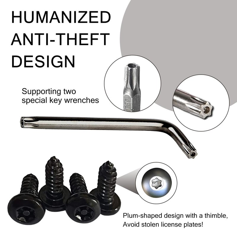 - Anti-theft Design: This bolt is specially designed to avoid license plate theft. The plum blossom-shaped design with thimble avoids license plate theft and thieves from stealing your license plate to commit crimes. It brings excellent stability and security and can be used with confidence. Foam board avoids the license plate from scratching the surrounding paint.