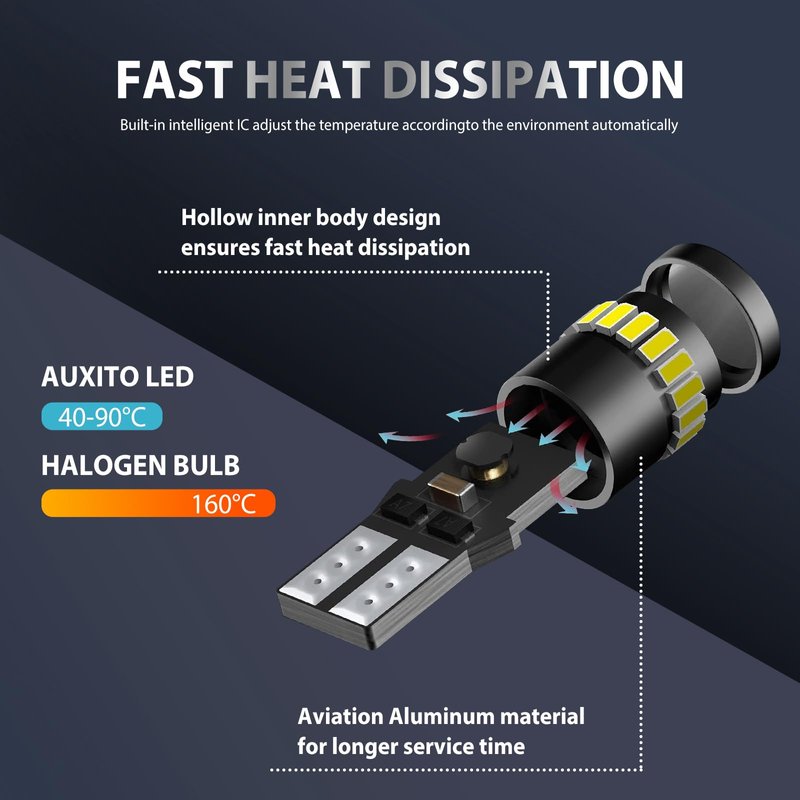 - 🚓 High-quality Material: This car led light is made of high-quality aluminum material. It also uses a high-power chip to produce stable light without flickering. Designed to save energy and improve performance, efficient heat dissipation ensures led bulbs can operate for up to 50,000 hours.