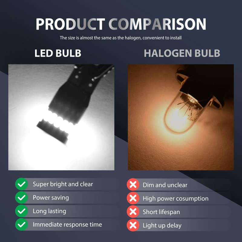 - 🚓 Features: This led bulb has an operating power of 3W and a product voltage of 12V. There is no delay in lighting up, high light purity, and also has the characteristics of strong color rendering and penetrating power. This product has a 180-degree illumination angle and high illumination, allowing you to see farther and clearer when reversing at night.