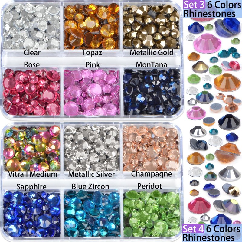 - 10000 pieces rhinestones are enough for diy crafts, fabric, phone case decoration, nail art, face, eye makeup, card crafting, shoes, bags, wedding dress, books, guitar, tablets, car plates, table scatter etc.