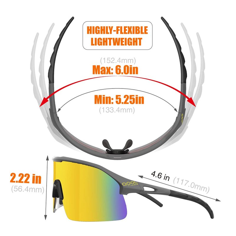 - 【Durable and High-Wrap Sunlasses 】Suitable for Faces of Medium to Large Size - Ergonomic design provides comfort and the trendy style matches your athleisure outfits. High-wrap cylindrical shield provide a greater view as well as a better portection to your eyes. Made of TR90, the frame is flexible, lightweight and durable. The adjustable nose pad is bendable to fit your nose shape to secure the frame in the place. A balance combination of function and popularity.