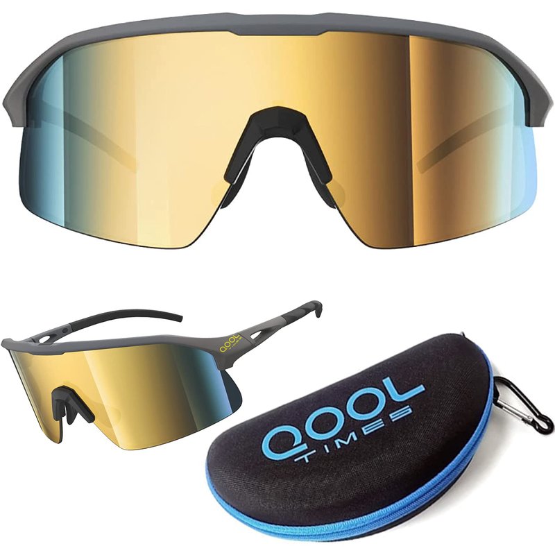 QoolTimes Polarized Wrap Around shield cycling Sunglasses Men Women Golfing ski Triathlon Volleyball Running Baseball