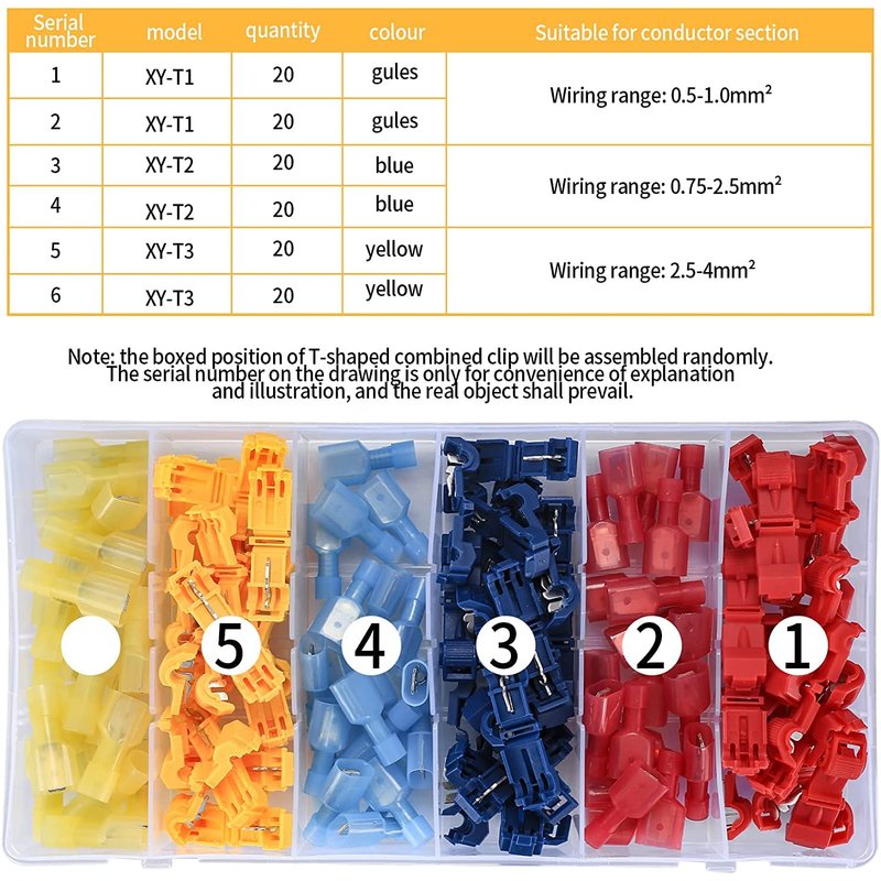 - All t connectors for wiring are packed in a storage box that is easy to use, find and carry.