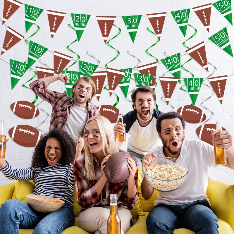 - Easy to install: Our football party banners come pre-assembled, making setup easy. Simply link the football hanging swirl cards with the streamers. These football game day party decorations can be hung from ceilings, walls, windows, doors, hallways, or anywhere you like.