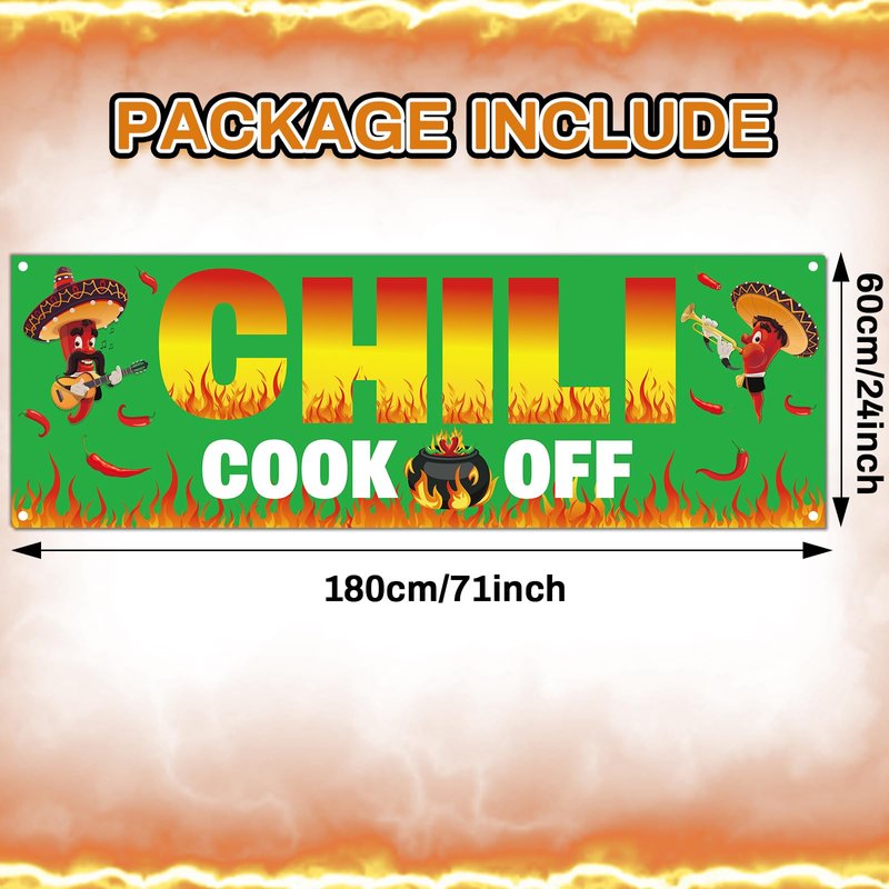 - Hit for chili party decoration: The chili cook off contest banner is in novel design featuring red chili and pot patterns, with green background and fire edge, bright color add vitality to your party.