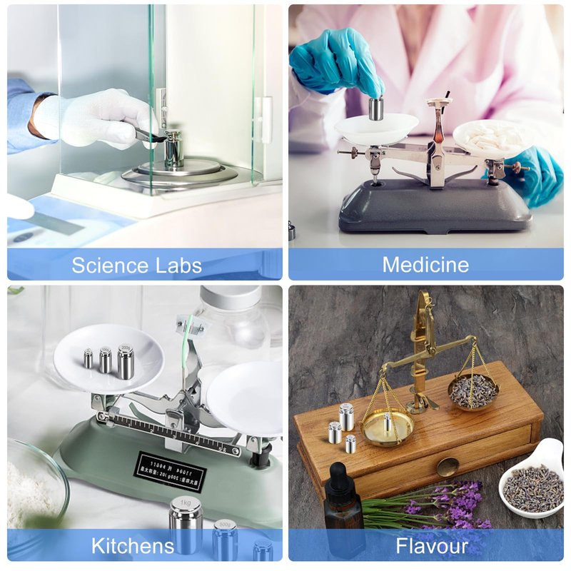 - WIDE APPLICATION RANGE: Calibration weights are compatible with various types of scales and balances, including balance scale, food scale, bathroom scale, jewelry scale and digital scales used for commercial, laboratory, and industrial applications.