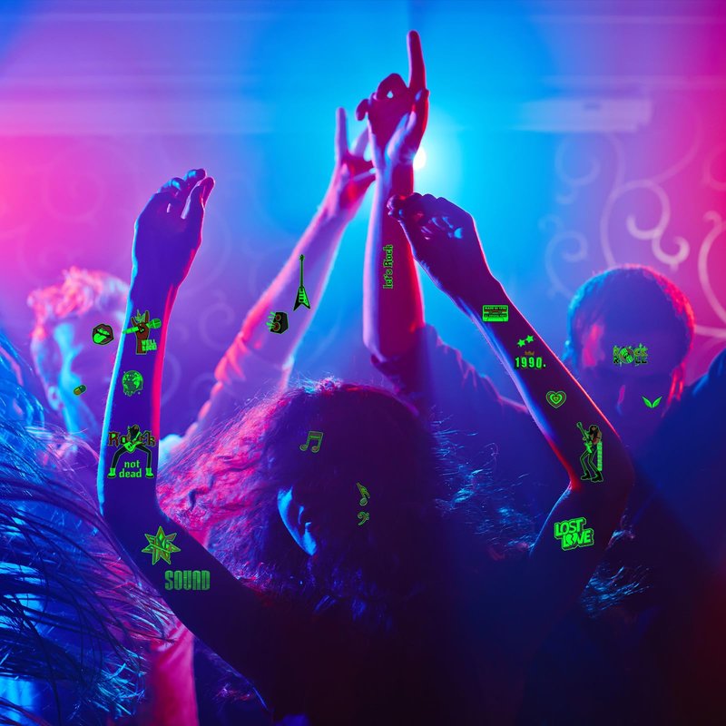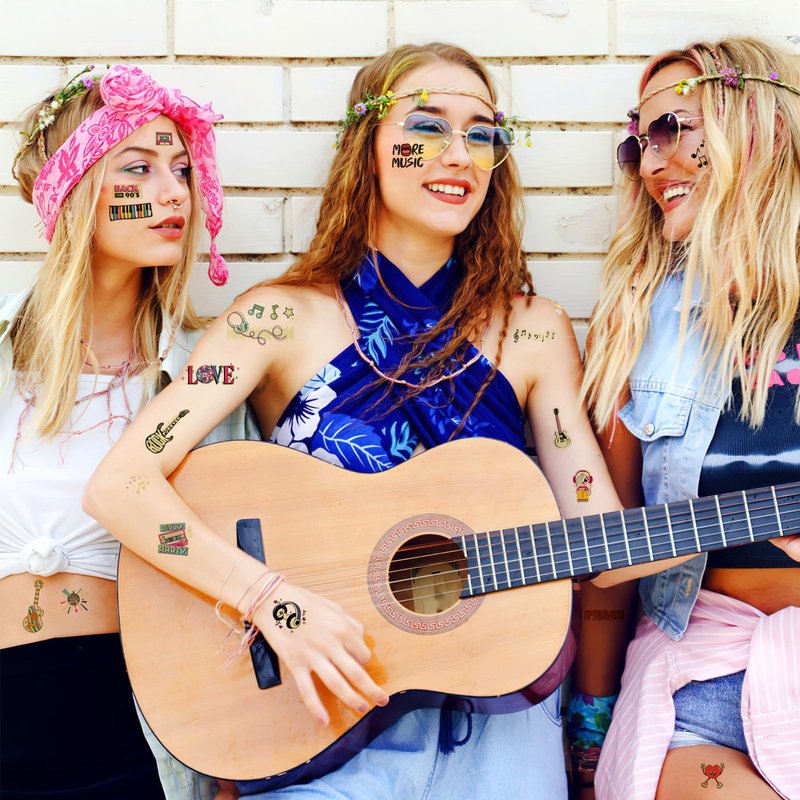 - š¶ćAdd Happiness to PartyćMusic Festival Party Temporary Tattoos are suitable for most events, such as music carnivals,guitar rap party,90s themed birthday party,rock and roll concerts.Ideal for decor that expresses your personal style and support for your love of music!