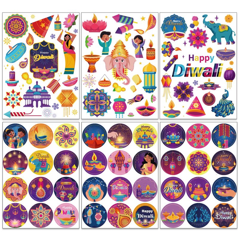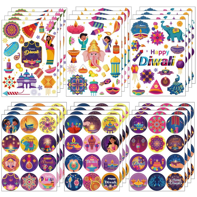 - 🪔【What You Get】436pcs happy Diwali stickers for kids,24 sheets Indian Diwali decals with 6 sheets unique styles,there are plenty of styles and quantities to satisfy your need for your upcoming Diwali party decorations.Each sheet is 5x7 inch. Ideal for Diwali decoration.