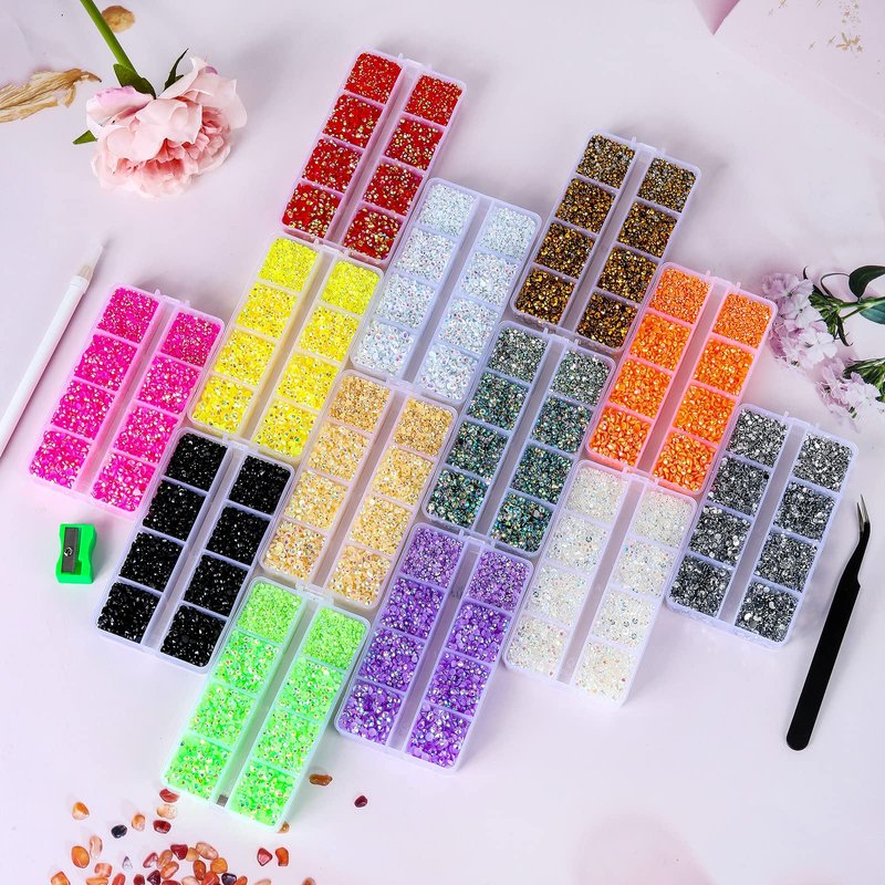 - CUTE LITTLE COMPARTMENTS: We use neat boxes with little compartments to make life easier. It is convenient to fit these non-hotfix rhinestones back in and keep them neatly organized in 6 different sizes because it has all individually opening compartments that split each size up and stop them from getting mixed up.