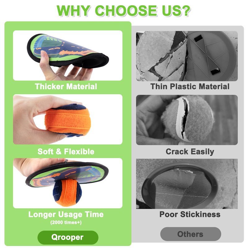 - SOFTER AND MORE COMFORTABLE: Our upgraded ball catch games for kids boast a softer, stronger, and stickier construction, ensuring effortless catching and a comfortable feel for kids; Whether it's a family reunion or a day at the beach, the fun never ends