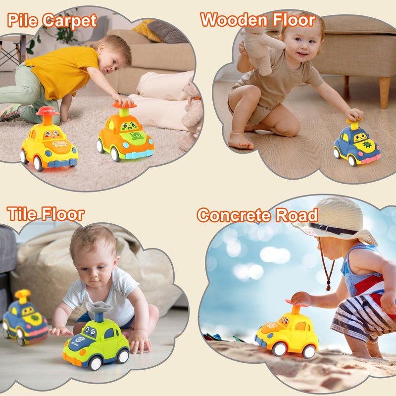 - 【Safe Toddlers Toy Cars】 Made of sturdy Non-toxic ABS Material. Perfect size for baby's hands, smooth edge prevents from hurting hands.