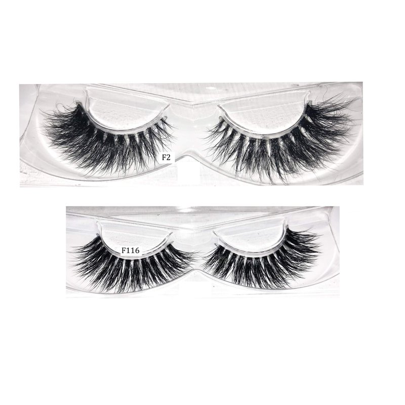 QTY:2 Alluring Clear Band 3D Reusable Strip, 100% Siberian Mink Fur False Eyelashes, Hand-made Cruelty Free (F2 &F116)