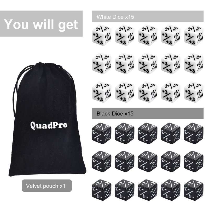 QuadPro 30 Pieces Dice Counters Token Dice Set D6 Dice Cube Compatible with MTG, CCG, Card Gaming Accessory