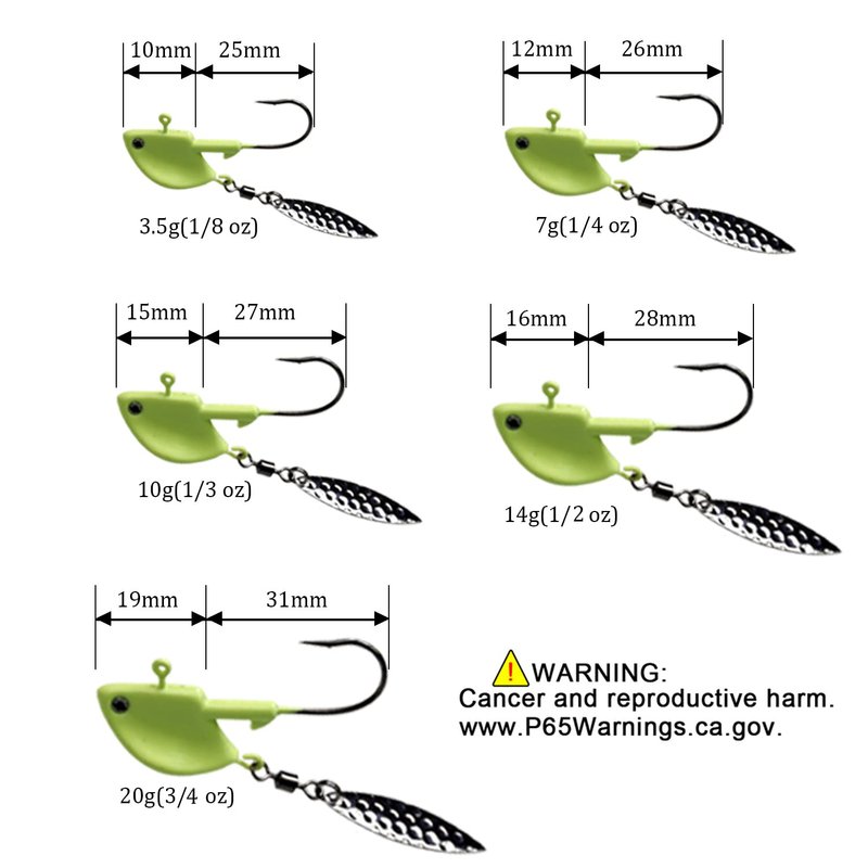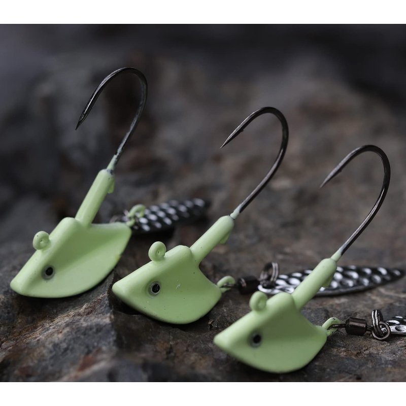 - 2.MORE ATRACTIVE: Combines the advantages of Spinner Spoons and Jig heads. Nice weight of Glow Jig heads comes with Rolling Swivels with Blade Spoons.